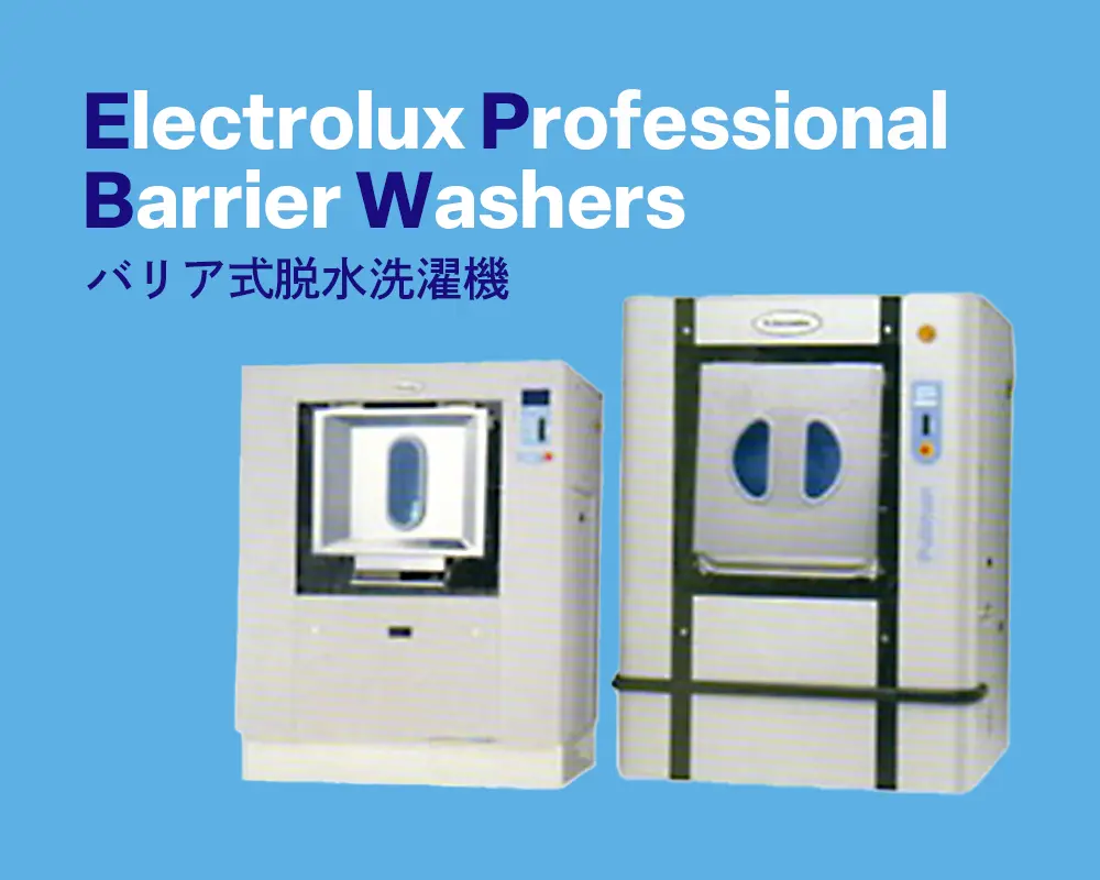 エレクトロラックスのバリア式脱水洗濯機は、衛生先進国フランスで開発されたリネンの感染対策専用のランドリー機器です。