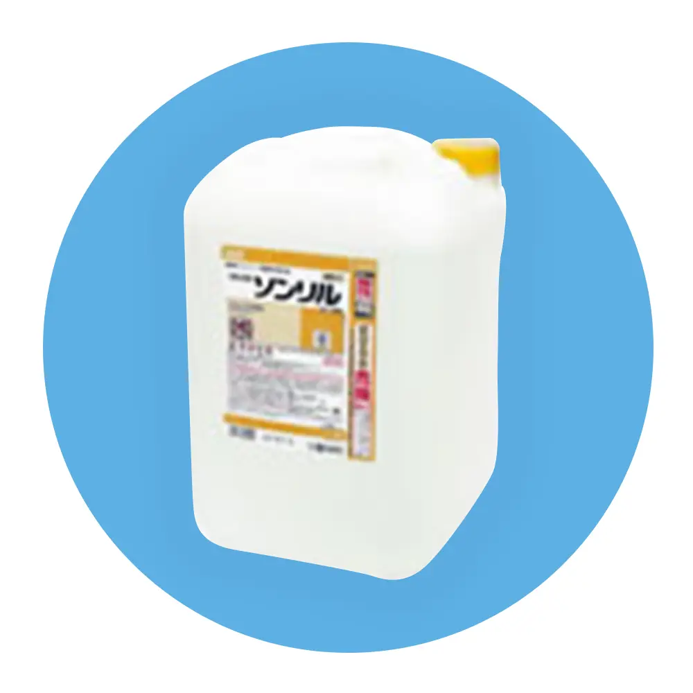 メチシリン耐性黄色ブドウ球菌(MRSA)に対して除菌効果があり、病院や老人ホームでのリネン洗浄に最適です。最終すすぎ工程で使用します。