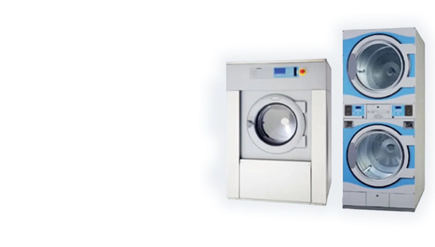 その中でも特に業務用洗濯機・乾燥機・汚物除去機・付随する(自動供給装置)洗剤類等、数多くの施設様に納めさせて頂いております。
